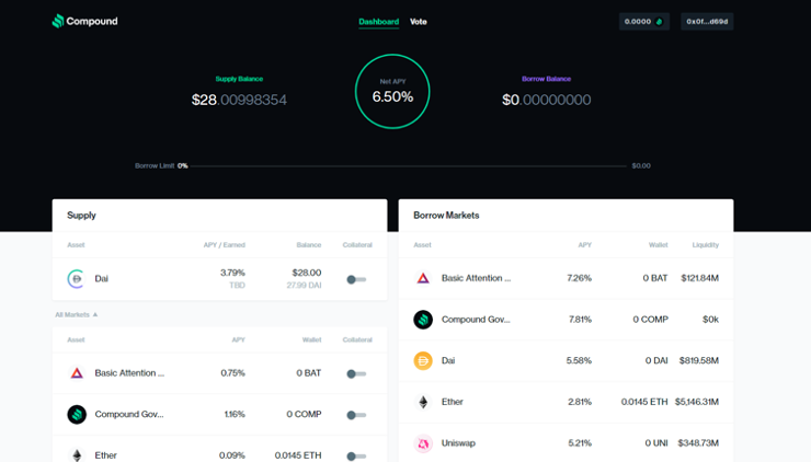 今回は年利(APY)が高そうな「DAI」を貸してみたいと思います。